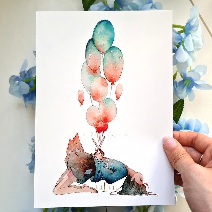My artwork revolves around themes such as mental health, surreal fantasy worlds, or simply fanart featuring characters I enjoy placing in dreamlike scenery.